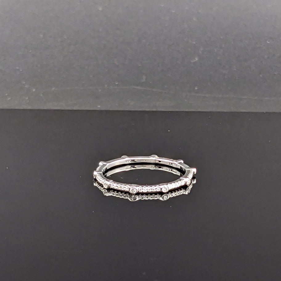 14k White Gold stackable ring with round shaped natural diamonds