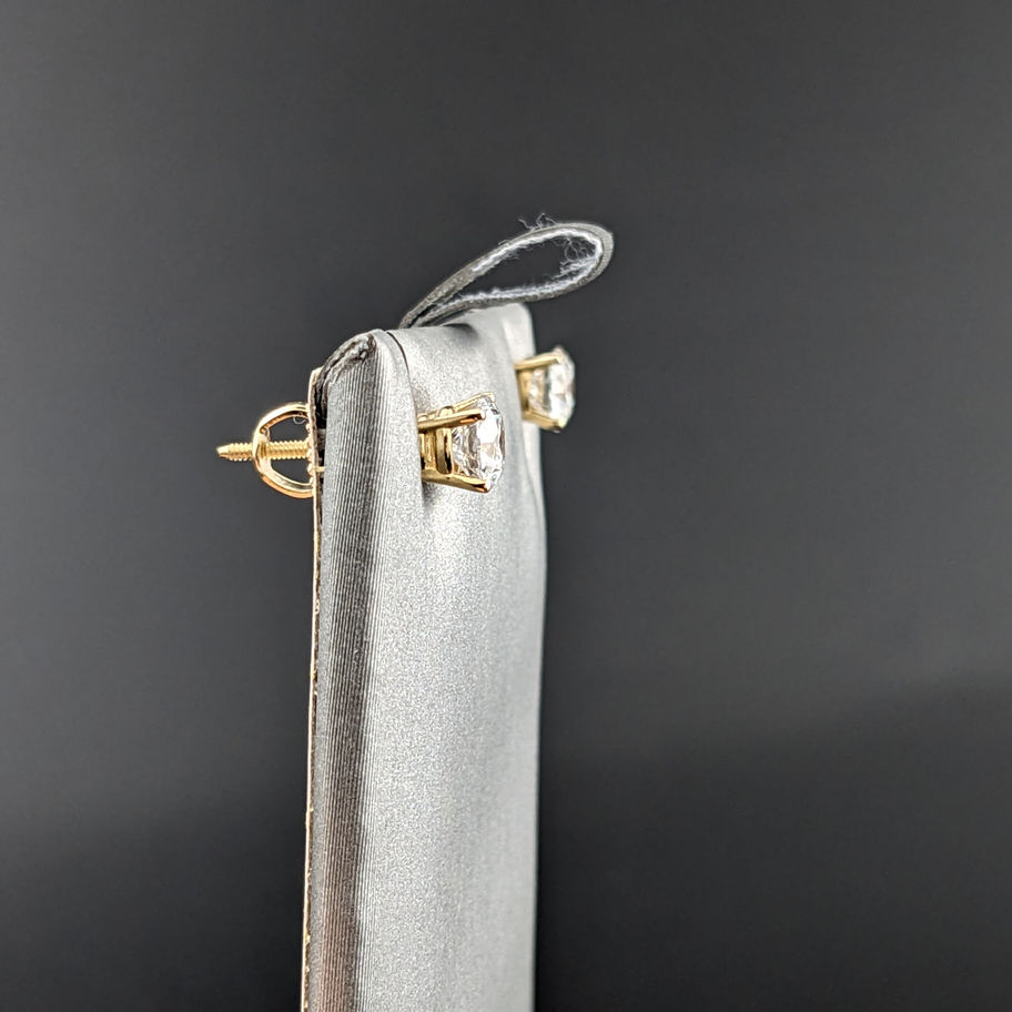 14K yellow gold stud earrings, featuring a round shaped lab grown diamond.