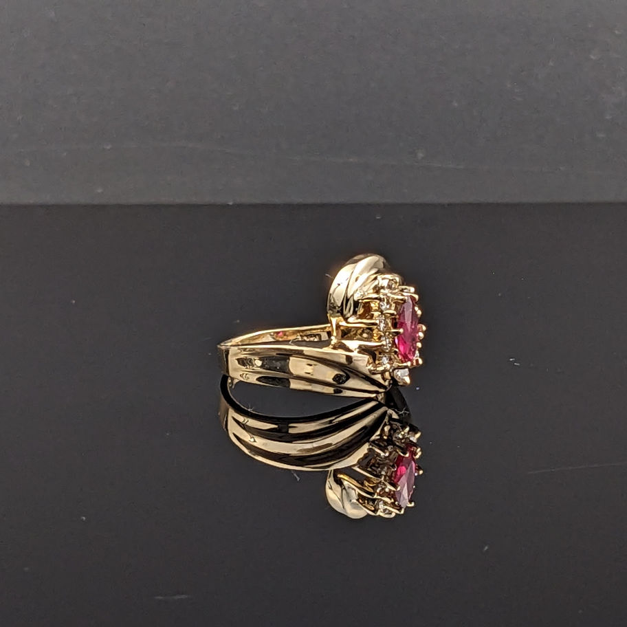 14k Yellow Gold Marquise Cut Ruby And Diamonds Ring