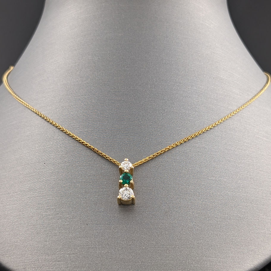 14K Yellow Gold Necklace Emerald and Diamond Before, Now and Forever