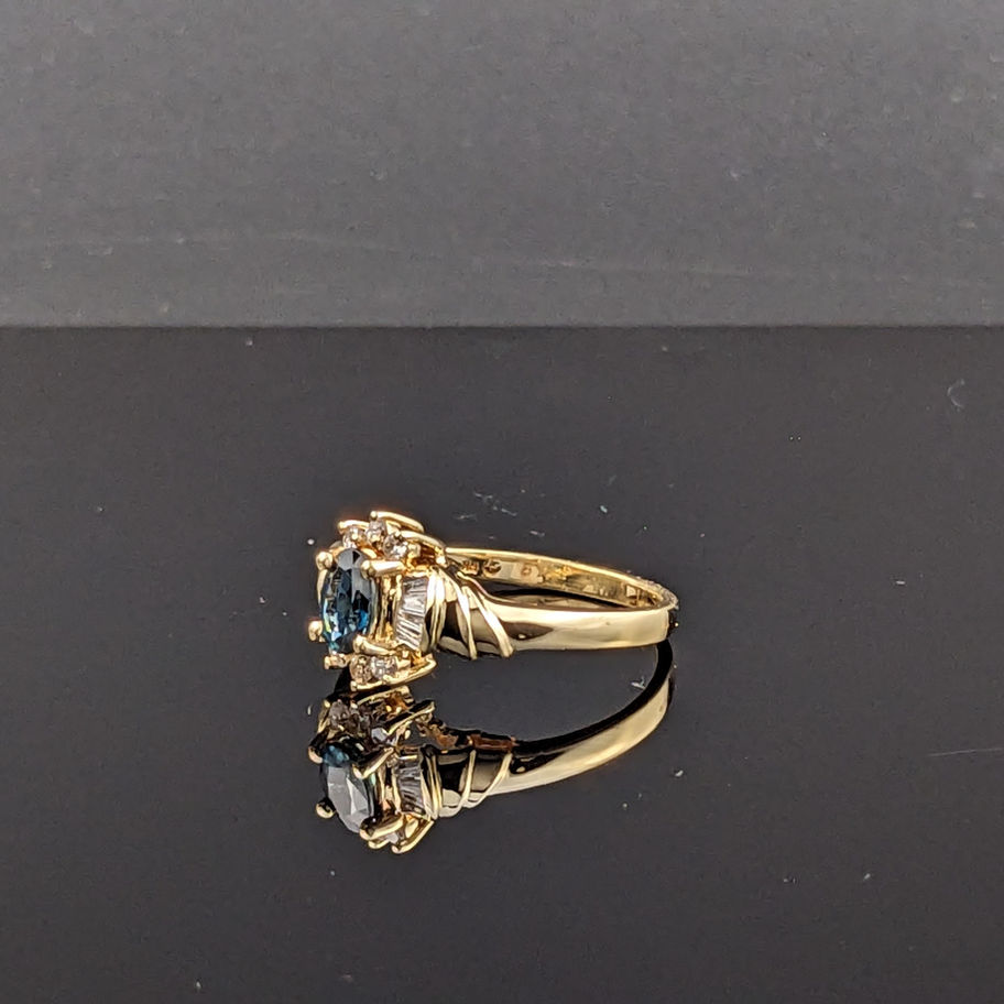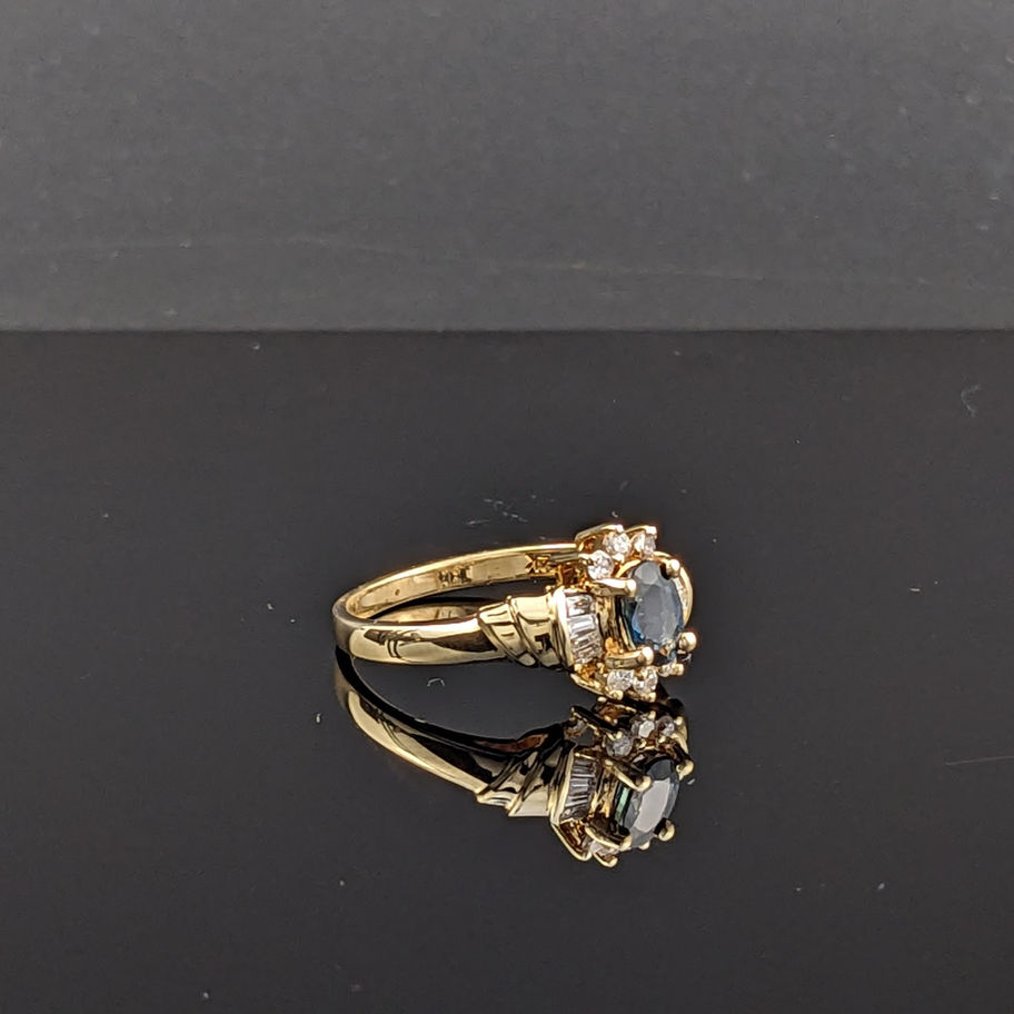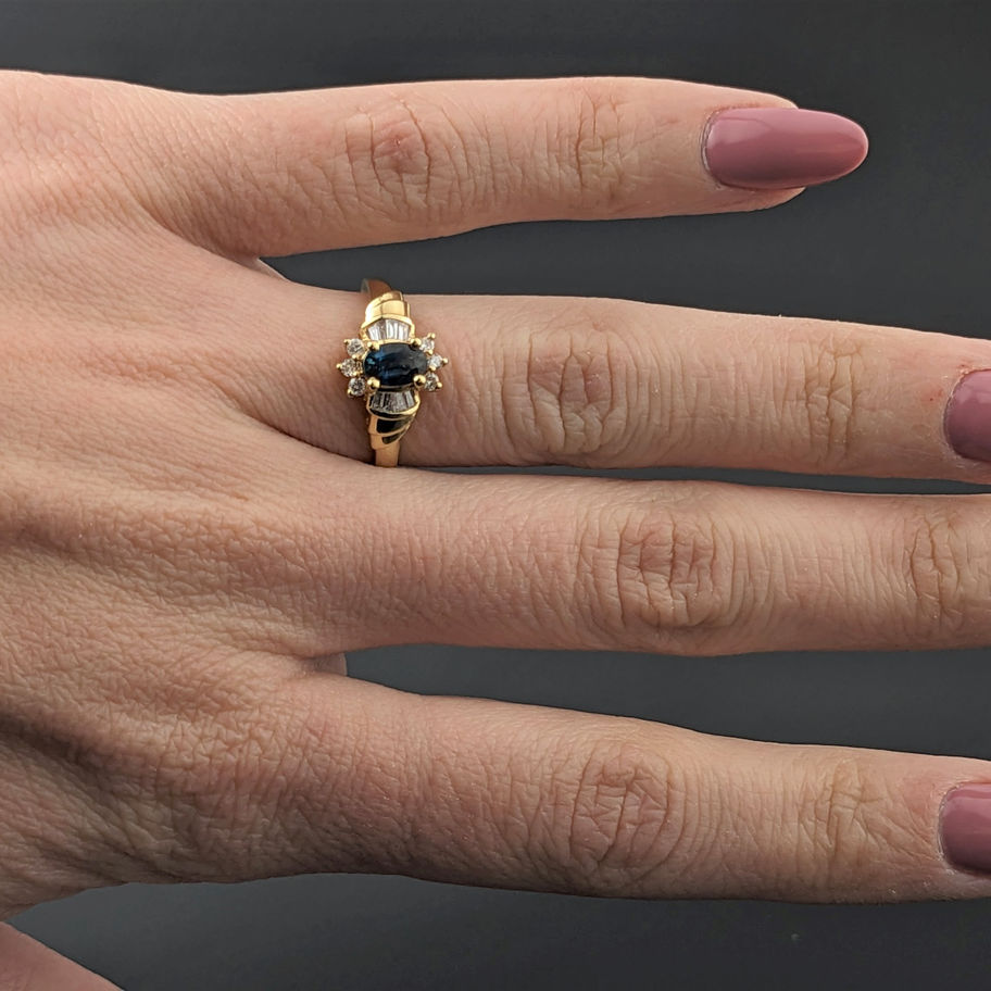 14k Yellow Gold Oval Cut Blue Sapphire With A Diamond Halo Ring