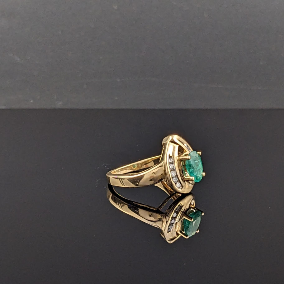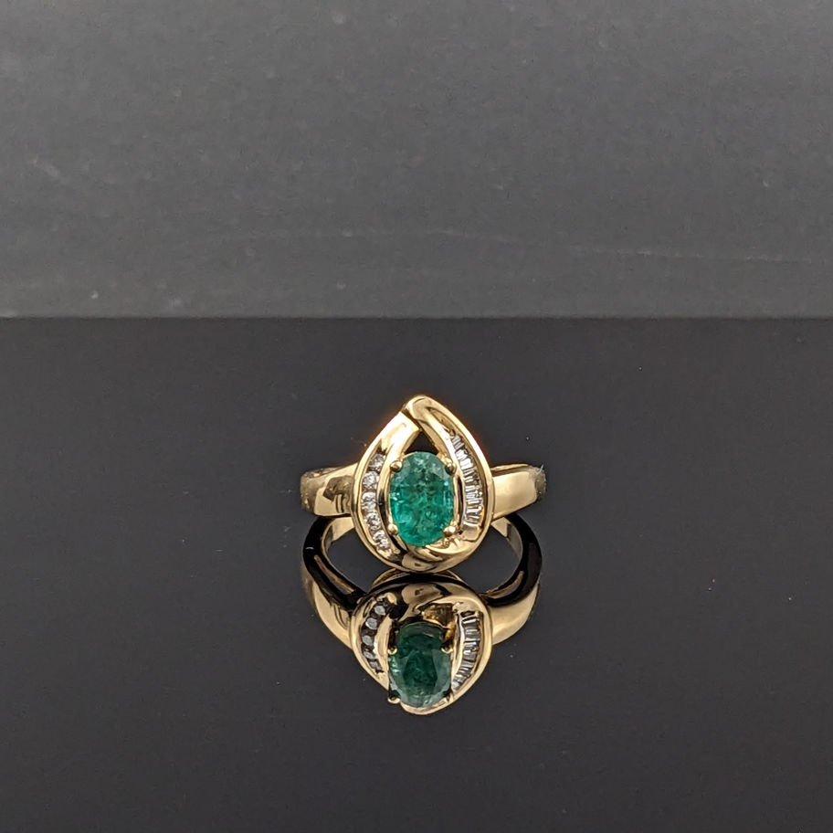 14k Yellow Gold Oval Shaped Emerald and Diamond Ring