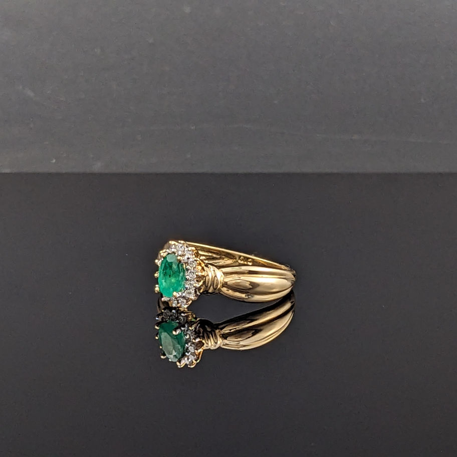 14k Yellow Gold Oval Shaped Emerald and Diamond Ring