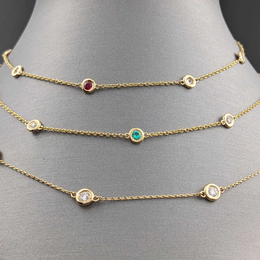 14K Yellow Gold Ruby and Diamond by the Yard Necklace