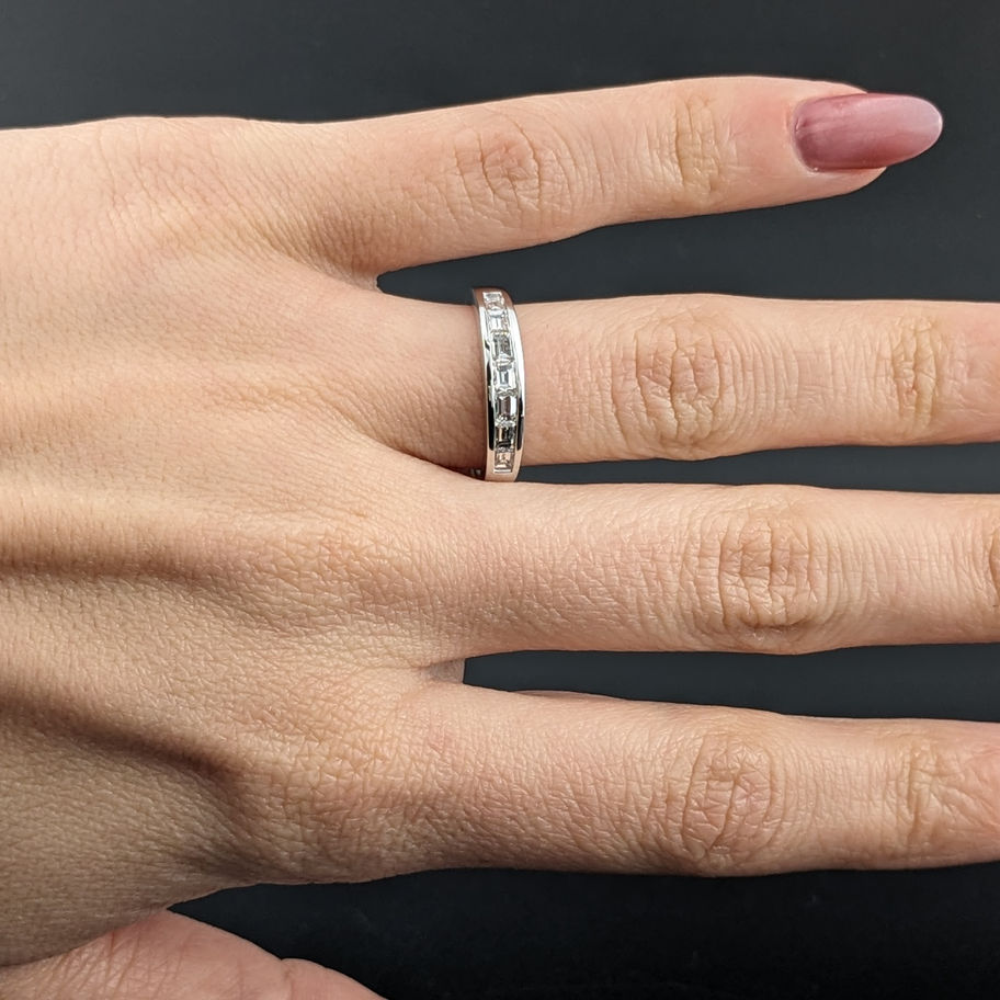 18k White Gold with side baguette cut natural diamonds in a Channel set wedding band